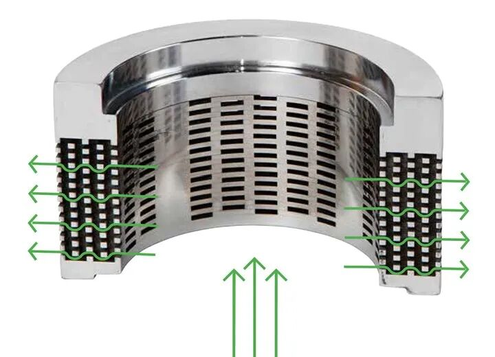Podobně vynikající výkon poskytují kulové kohouty s kovovým sedlem a prvky proti usazení sedla. Anti-solidní konstrukce sedadla pomáhá zabránit vnikání médií do oblasti sedadla. Těsný kontakt mezi tělem ventilu a sedlem v kombinaci s konstrukcí stíracího sedla pomáhá při odstraňování nahromaděných částic. V důsledku toho se segmentované kulové ventily ukázaly jako vysoce účinné pro polymerní kaše.